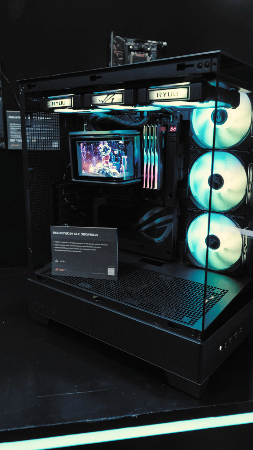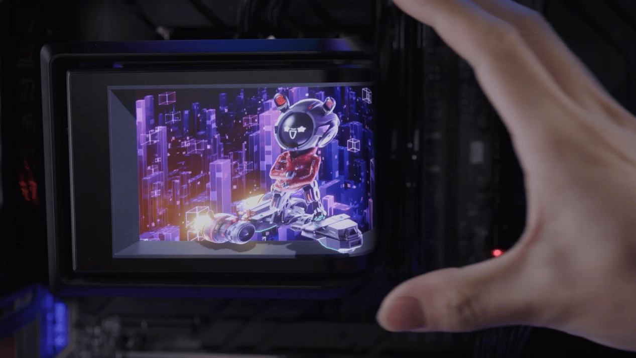 ROG RYUO龙王4代360 ARGB水冷散热器,作为ROG家族的最新力作,不仅继承了前代产品的优秀基因,更在颜值与性能上实现了全面升级。其搭载6.7寸AMOLED曲面屏,不仅支持2K高分辨率和60Hz的高刷新率,还具备裸眼3D视频呈现能力,无论是从正面还是侧面观看,都能带来清晰、流畅且极具立体感的视觉效果。这样的设计不仅满足了玩家对高颜值的追求,更为机箱内部增添了一抹未来科技的气息。更令人赞叹的是,这款水冷散热器的曲面屏还支持自定义系统参数显示功能。玩家可以根据自己的需求,将CPU温度、风扇转速等关键信息实时呈现在屏幕上,随时掌握电脑的运行状态。这种兼顾颜值与实用性的设计,成功的吸引了大量玩家的关注。