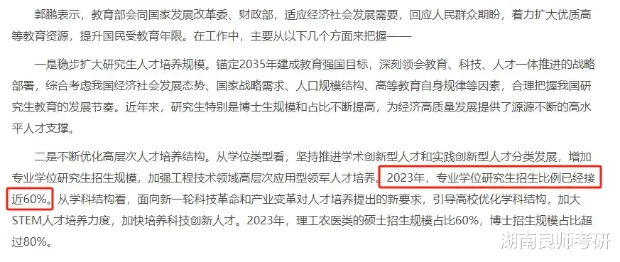 而到了2023年,专业学位研究生招生比例已经接近60%。