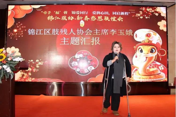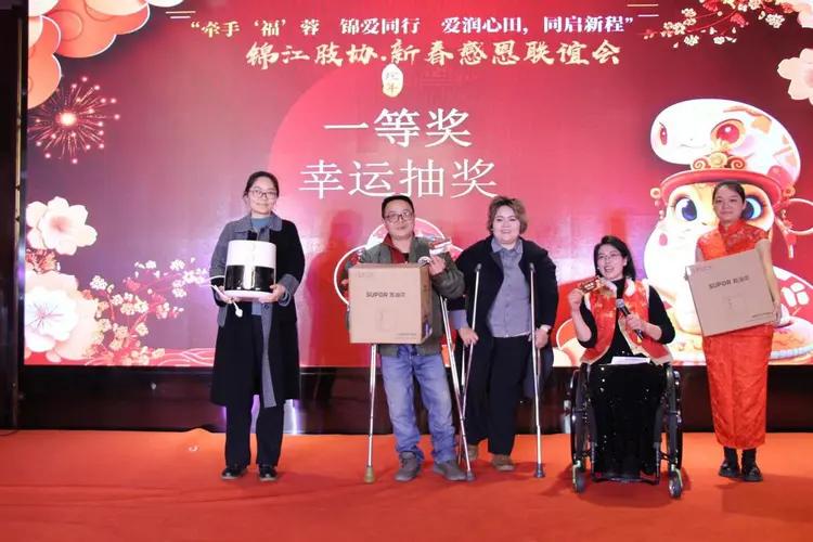 在成都市肢残人协会指导下,由成都市锦江区肢残人协会主办,由成都自强残疾人关爱中心、四川搏鳌体育有限公司共同承办,由中共成都医大口腔医院党支部联合协办的“牵手‘福’蓉 锦爱同行,爱润心田 同启新程”成都市锦江区肢残人协会2025新春感恩联谊会于1月21 日在总府路皇冠假日酒店圆满举行。锦江区残疾人联合会党组成员副理事长肖平、组联科科长周乾海,四川省肢协秘书长、成都市肢协主席、秘书长,原四川省残疾人福利基金会的老领导以及爱心企业单位、锦江区各街道残疾人专干专委、残障朋友代表120余人共同参与。