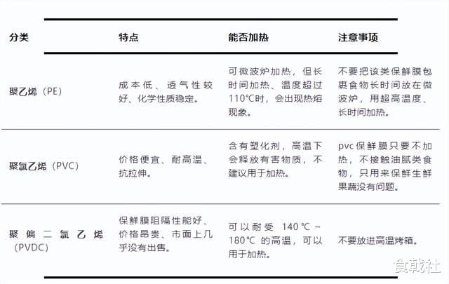 市面上常见的食品级保鲜膜材质主要有聚乙烯(PE)、聚氯乙烯(PVC)、聚偏二氯乙烯(PVDC)和其他生物降解材料。我们总结了材质特点和使用注意事项↓