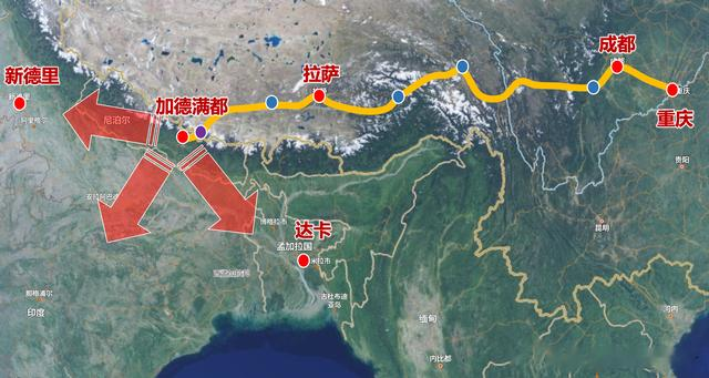 打开地图,我们不难发现,如果没有印度的阻挠,我们完全可以从中缅铁路建设一个分支,经过印度东北邦和孟加拉国,就可到达尼泊尔,也没必要在崇山峻岭中穿梭,开辟这么险要的工程。