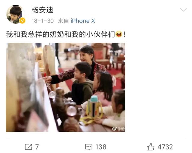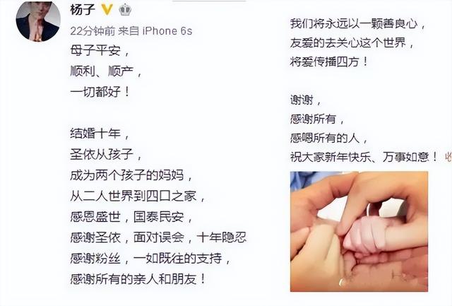 弟弟出生后,杨子第一时间就在社交平台分享了一家四口的牵手照