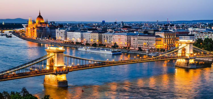 匈牙利首都布达佩斯被多瑙河一分为二。19 世纪的链桥将丘陵密布的布达区与地势平坦的佩斯连接起来。