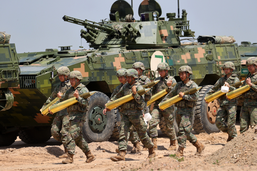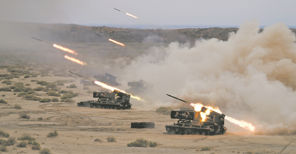 在40分钟的时间里,这片范围多达50平方公里的军演区域内,双方倾泻了数百吨弹药,四周都笼罩在导弹和大炮爆响的氛围中。