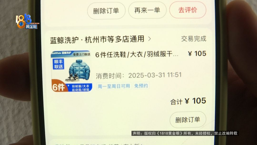 小张:我觉得他们存在虚假宣传。我的疑点是,为什么我是通过抖音平台下单的蓝鲸洗护,然后收货人是“新物洗护”。原本预估是送给杭州洗的,然后它这边的话,直接说是系统分配直接给我分配到了徐州。