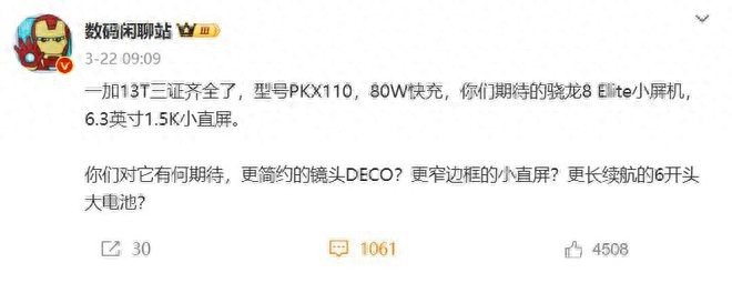 值得注意的是,在友商普遍为轻薄牺牲续航的当下,一加13T反其道而行:砍掉使用率不足10%的超广角镜头,换来碾压同级产品的续航能力。某数码大V直言:‘这才是小屏党的梦中情机——性能不阉割,出门不用带充电宝!’