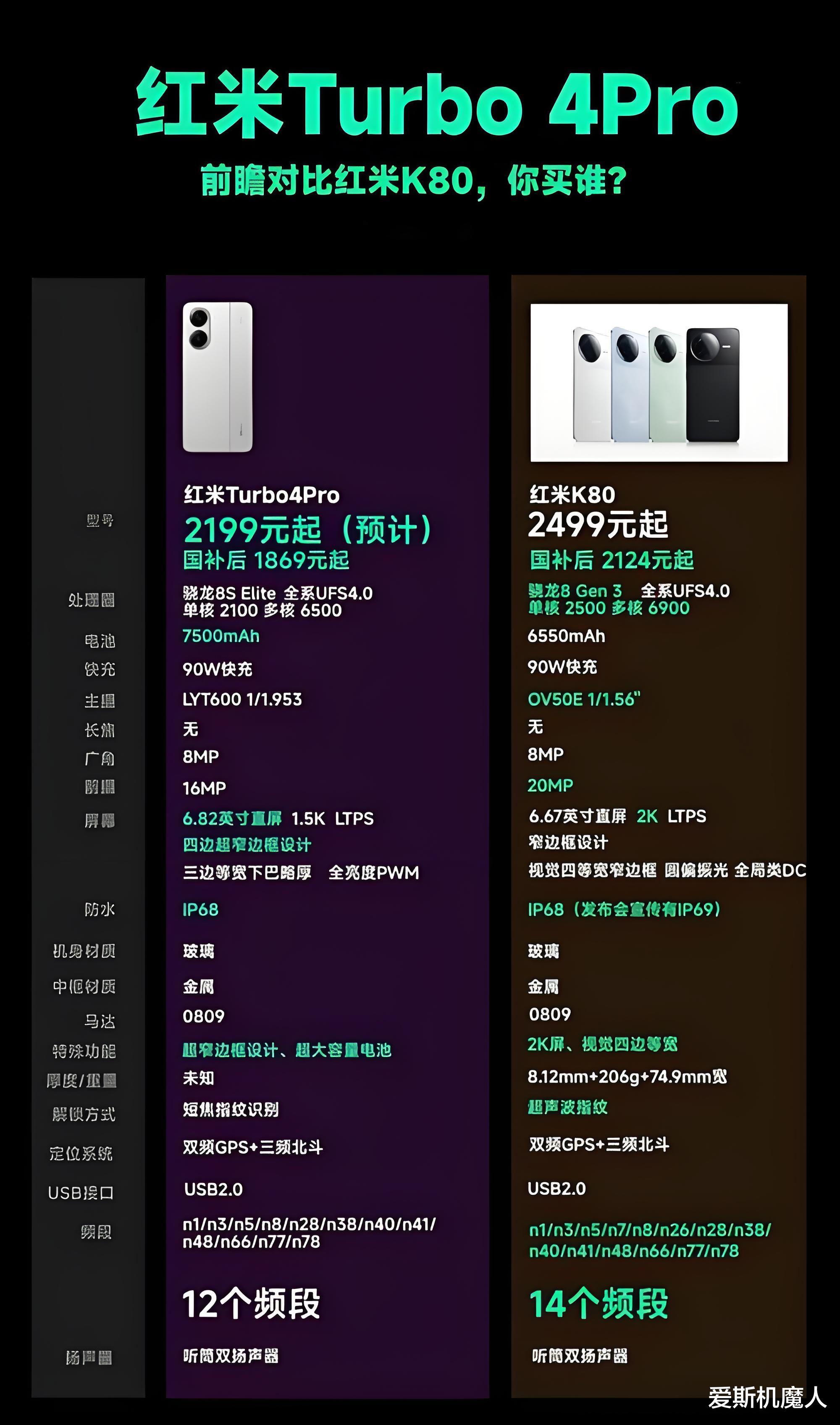 六、价格猜想:2000元档性价比之王根据目前的曝光信息,REDMI Turbo 4 Pro的预计起售价在2000元档位。考虑到其全方位升级的配置和出色的性能表现,这一价格无疑具有极高的性价比。特别是16GB+512GB的顶配版本,预计售价在2399元左右,进一步降低了高性能手机的购买门槛。