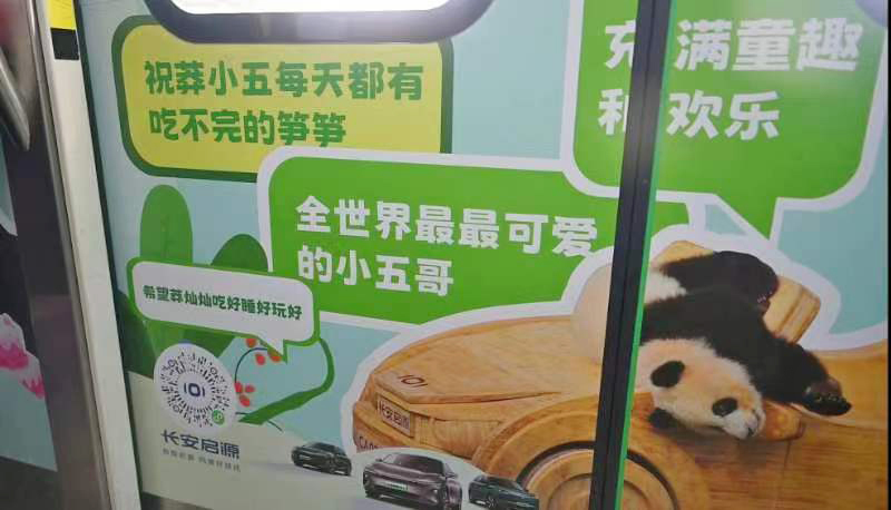 “我们刚在动物园参加完小五的生日Party,氛围真的太好了!”一位前来打卡小五专列的猫粉脸上洋溢着兴奋的笑容,表示自己从未见过有哪只熊猫如此有牌面,长安启源给小五准备充气大熊猫和竹子蛋糕很有爱,在朋友圈看到小五专列时无比感动,立马就跑过来合影留念,主办方不仅把小五宠上了天,也极大满足了咱们猫粉的情绪价值,必须给长安启源的爱心之举点赞!