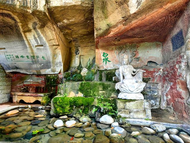 大佛楼里面和其他寺庙不一样,里面不是塑的神像,而是一个巨大的石窟,依山雕刻着神像,和龙门石窟相似,也许龙门石窟的奉先寺以前也是有楼阁建筑的。