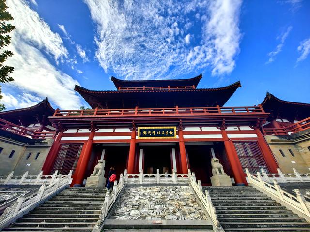 沿着大佛楼的左侧石级而上,后面都是现代建筑了,有唐朝胖胖的侍女们在园中嬉戏的雕像,还有一块现在十分流行的路牌。