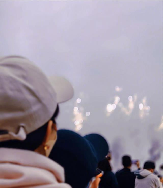看烟花的时候,想想那专注的小模样超级可爱,周围的嘈杂声仿佛不存在,他的世界里只有天空中绽放的烟花。