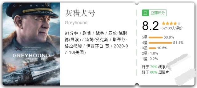 《灰猎犬号》是由汤姆·汉克斯亲自参与影片的编剧,并作为唯一主演参与,也可以说这部电影就是他一人撑起来的,这部电影就是为他量身定做的。