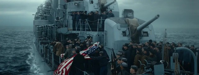 汤姆·汉克斯是海上一艘灰猎犬号的驱逐舰上一名舰长,同时也是这一次援助行动的总指挥。在这种敌我复杂的战情之中,可以想象到任务是多么的艰巨。