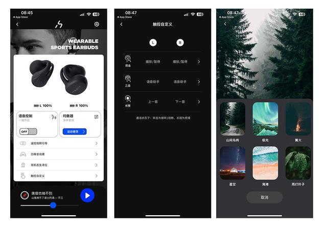 接下来可以在均衡器里选择自己喜欢的音效,也可以自定义设置更符合自己爱好的音效,如果是入睡困难的朋友,也可以使用“白噪音场景”,让自己安然入睡。