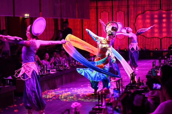 以舞侑食,看万般锦绣,与诗意共舞,感受着舌尖与历史文化的碰撞。在视觉、听觉、味觉的极致盛宴里,奔赴一场沉浸式的霓裳曼舞、灵光幻彩的宴饮之旅。(通讯员/陈乐)