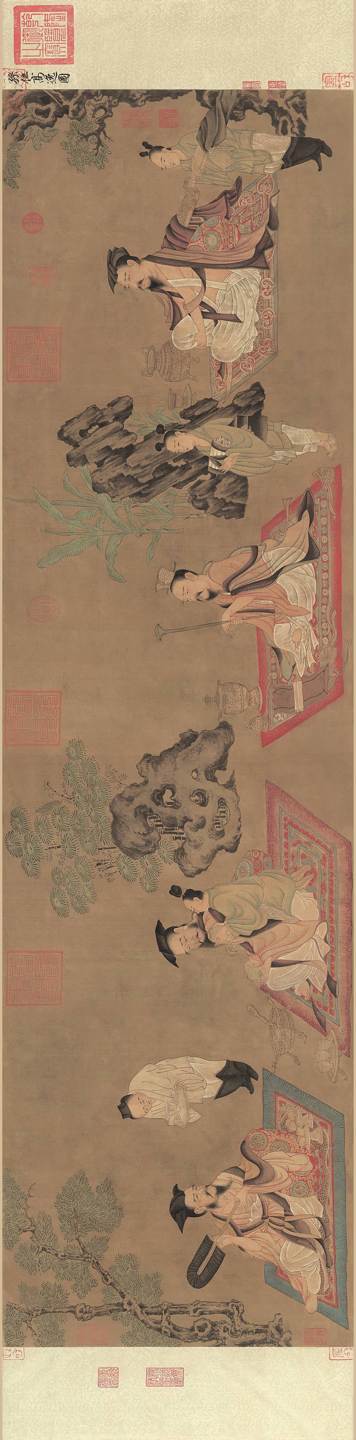 孙位《高逸图》,又名《竹林七贤图》,唐代,绢本,设色,纵45.2厘米,横168.7厘米。现藏于上海博物馆。1000多年以来此画历经磨难,但流传有序,保存基本完好。
