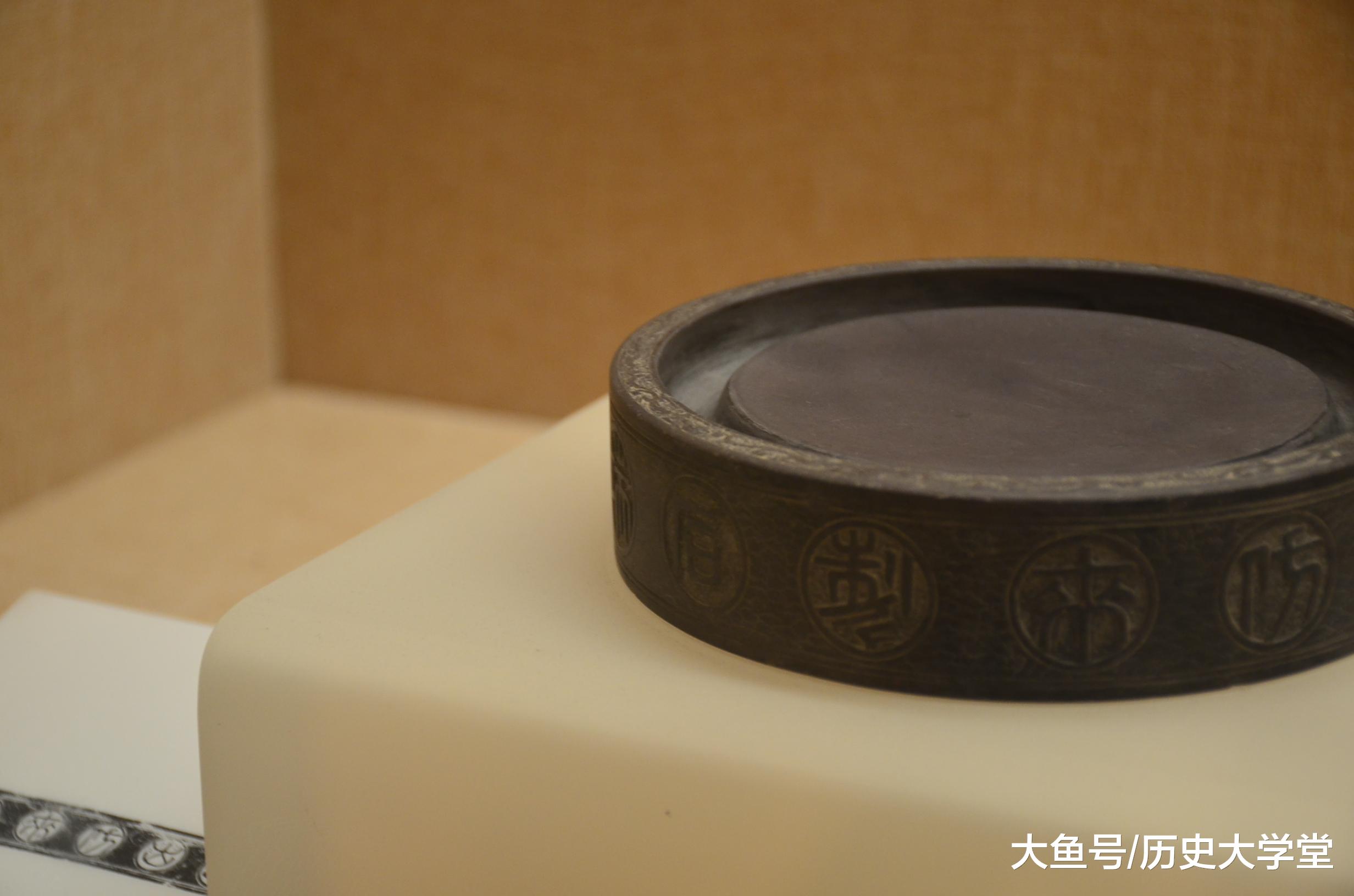 这是清代的端石圆形石渠砚,材质是坑仔岩石的双面砚,砚侧面的铭文较为图案化,所刻的铭文为“文人守处真无价,端石制来仿出瓦”。 #清朝# #文房四宝#
