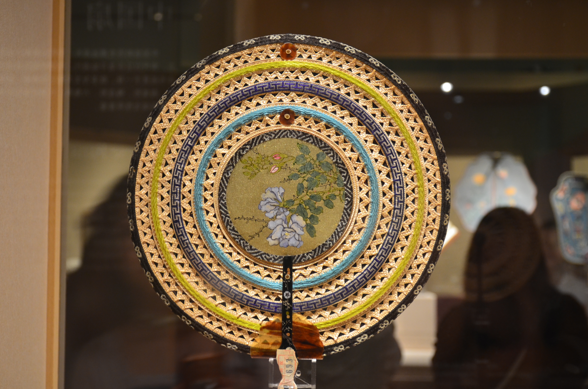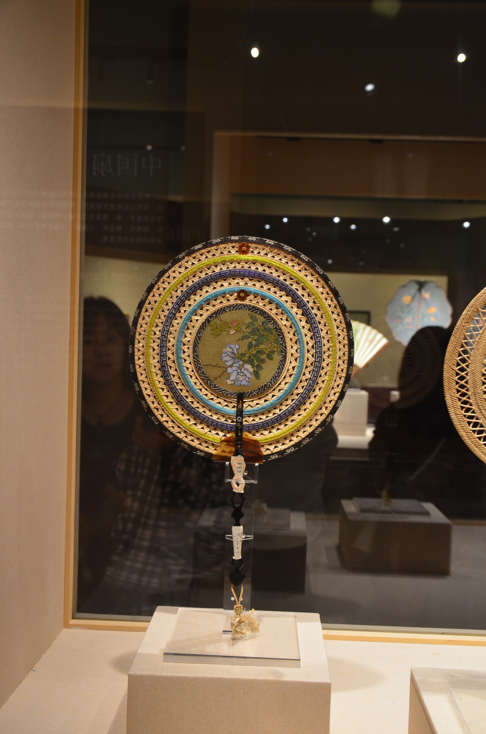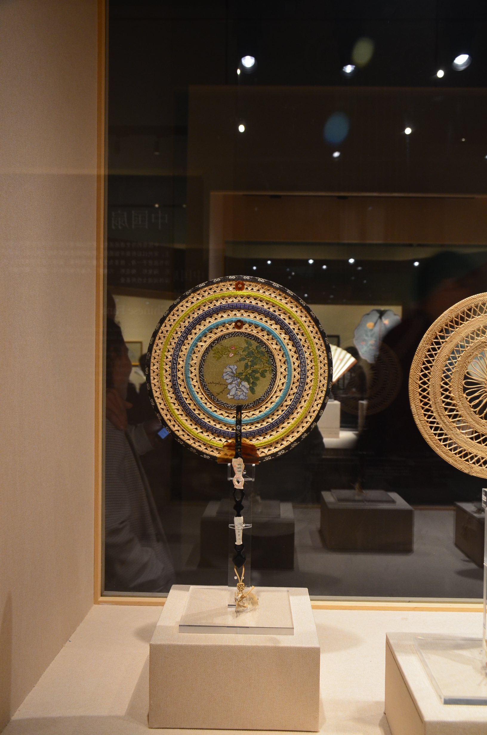 清朝的编草绘花卉心楼阁图黑漆柄团扇,相当秀气 #博物馆# # #清朝#