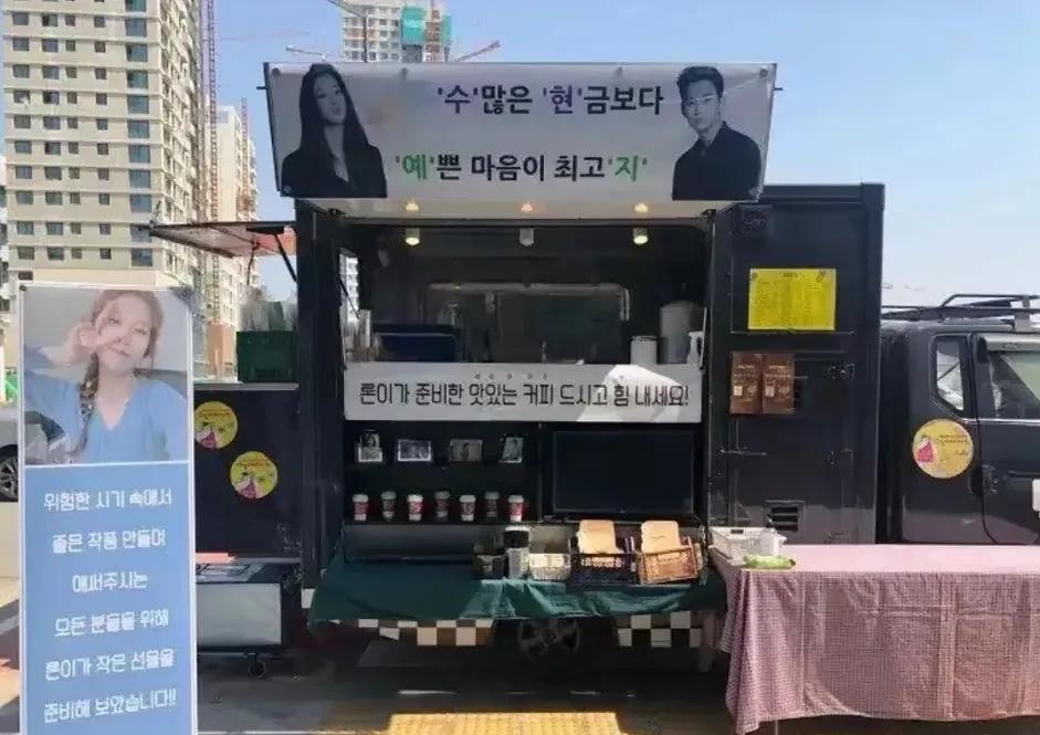 据传,当时与金秀贤交往的金赛纶还曾为剧组送去咖啡车,并附上祝福语:“比起众多的金钱,最重要的是漂亮的心。