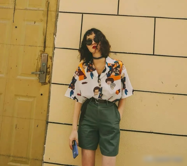 值得一提的是,花衬衫也可以与短裤进行搭配,但是需要选择低腰裤且搭配一件长款外套来遮掩腹部,以免增加腰围显得臃肿。