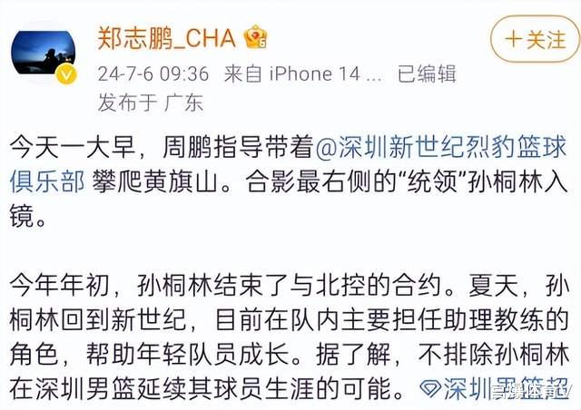每年夏天,都会有一些CBA名将因为各种原因告别赛场,当然,也有人逆流而上。根据深圳媒体报道,在新疆男篮拿到了总冠军的孙桐林已经确定和深圳男篮完成了签约,他目前的身份是助理教练,但也不排除以球员身份回归的可能。