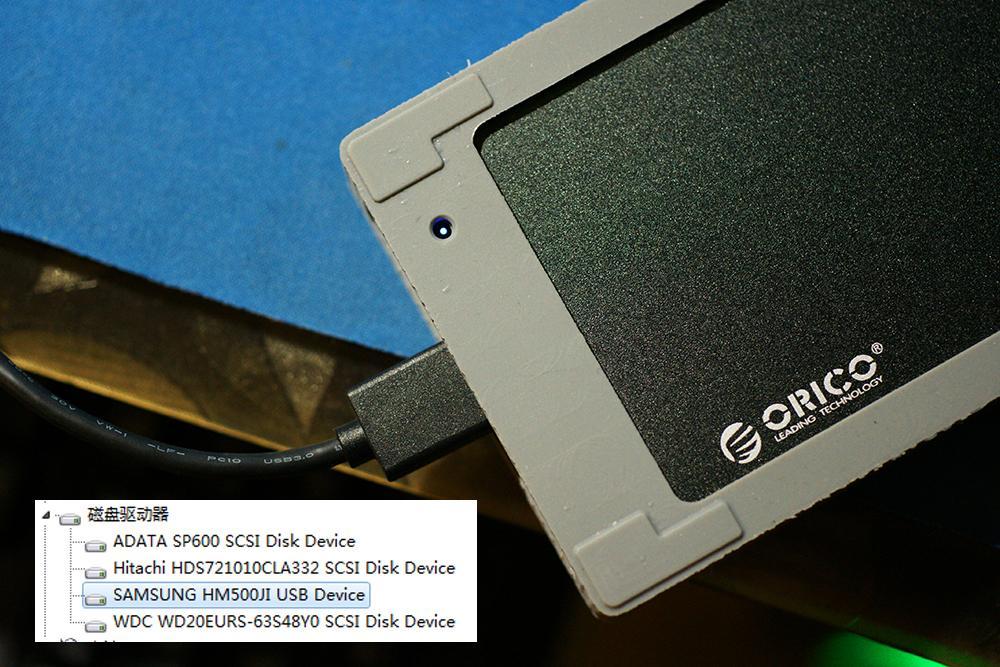 对于硬盘盒的使用,主要看重的稳定性和速度,那么这款ORICO 2.5寸铝镁合金硬盘盒的表现如何呢,咱们来测试一下,首先记得一定要把USB数据线接入3.0的接口。在识别硬盘的过程中,指示灯会红蓝交替闪烁,几秒钟后便可以在设备管理器中找到这块硬盘。