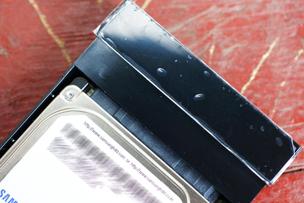 硬盘和盒子的接口接合得很好,而十字形的托架也能过给予它很好的保护。