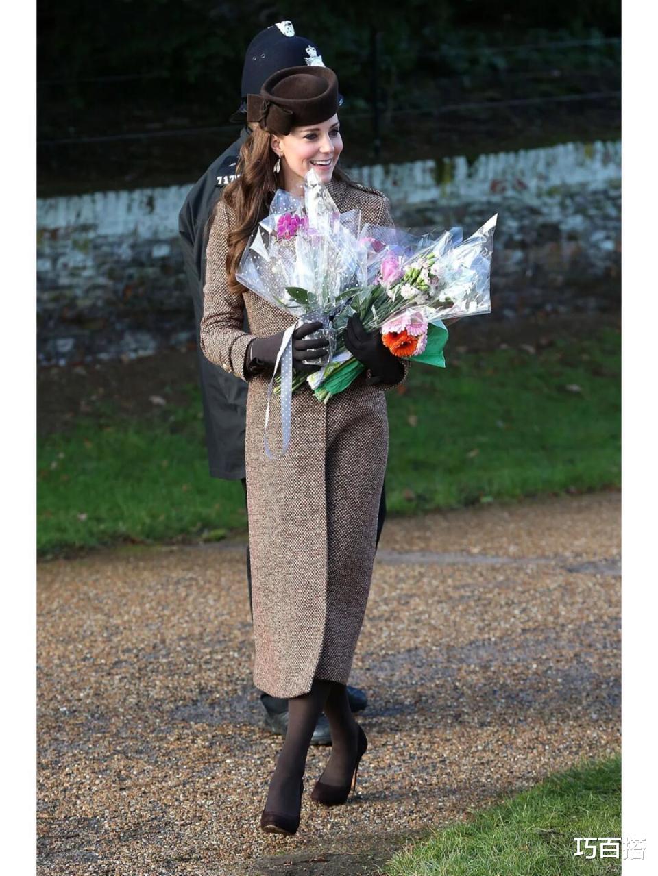 这次选择一件土褐色粗花呢大衣亮相圣诞颂歌音乐节现场,以极其尊贵、极其温婉的形象赚足回头率,黑茶色礼帽、手套、丝袜都为冬天氛围添了一份力,手捧鲜花、笑容灿烂,感染力十足。