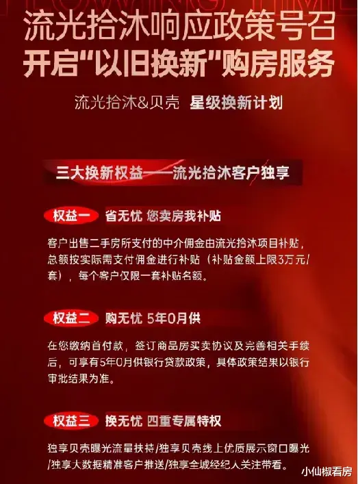 大致都有:旧房补贴、前期的“0月供”贷款政策,以及二手挂牌的流量扶持家电礼包等等。