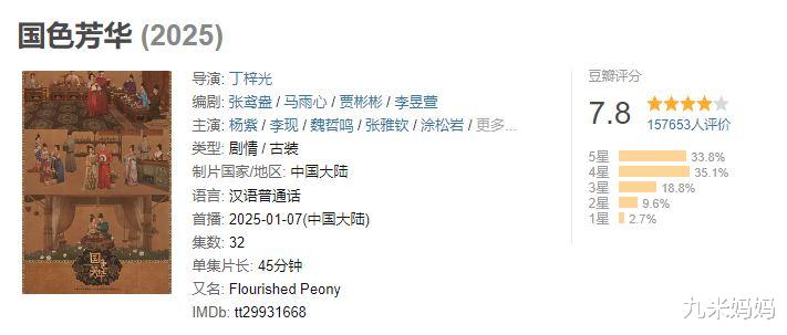 总体来说,《国色芳华》其实就是一部打着大女主名义的娇妻文学。剧情逻辑很弱,很像几部剧剧情的大杂烩。这样的剧集在豆瓣都能得到7.8分,真是让人不由得对豆瓣越来越失望了。你们说呢?