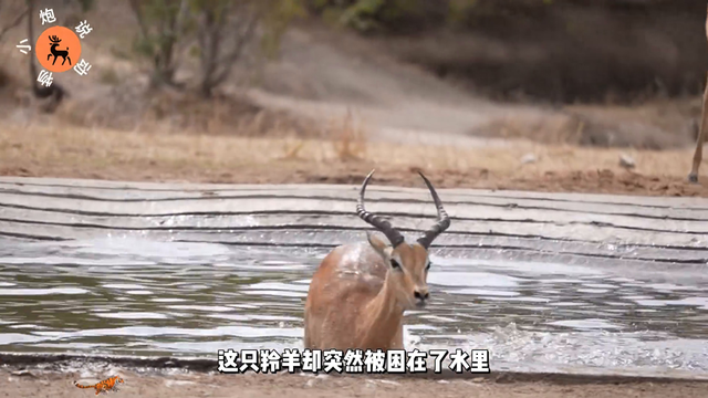 这才是真正的绝望。一群羚羊在河边喝水,享受着片刻的宁静。当同伴们陆续离开时,这只羚羊却突然被困在了水里,似乎是被同伴推进水池的。它在水中扑腾着,努力想爬上岸,可每次都以失败告终。