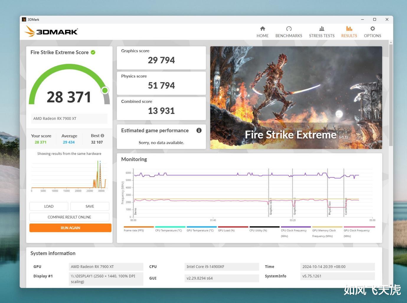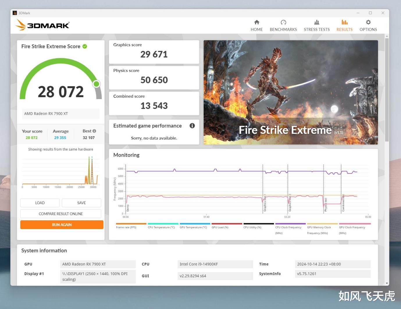 3DMARK Fire Strike Extreme,物理得分50650。