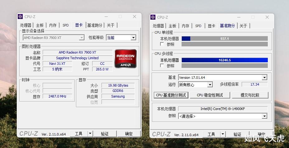 运行下CPU-Z跑分看看,多线程16246.6,单线程937.1。