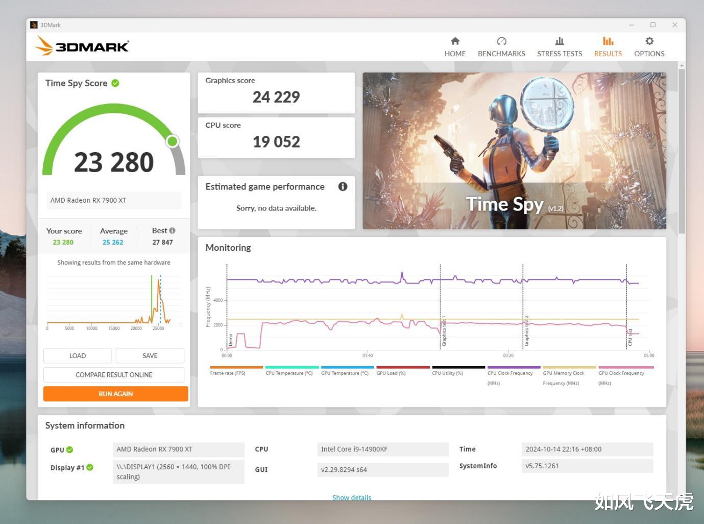 3DMARK Time Spy,CPU得分19052。