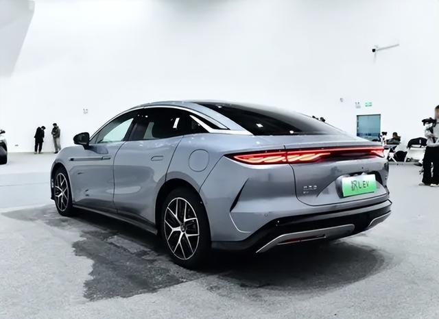A柱下方那个进气道装饰也挺抢眼,运动感提上来了。车尾灯跟汉L是同款新设计,车顶扰流板也没落下,整个车尾线条凹凸有致,挺耐看的。