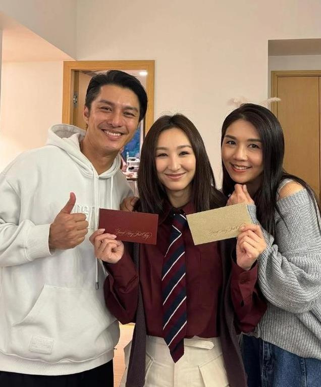 照片可见,这次“二哥”马国明邀请了唐诗咏、黄嘉乐夫妇、林子善一家三口和新加入的高海宁,屋主的汤洛雯身穿浅粉红色卫衣配米白色长裤,她捧着摇钱树的新春饰物,与众细佬、妹合照并坐在C位高举V字胜利手势,并向各人派利是。