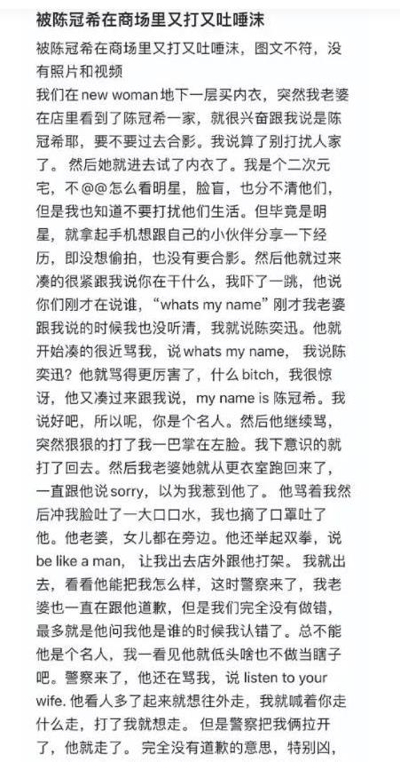 因为网友老婆看到陈冠希,网友随即想拍照和同伴分享没想到叫错了名字。随即破口大骂,两人互相口水之战。