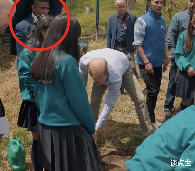哥伦比亚当局公布的视频显示,在上周五上午访问拉吉拉尔达学校期间,哈里在操场上种树时,可以清楚地看到他身后有人手持着盾牌。