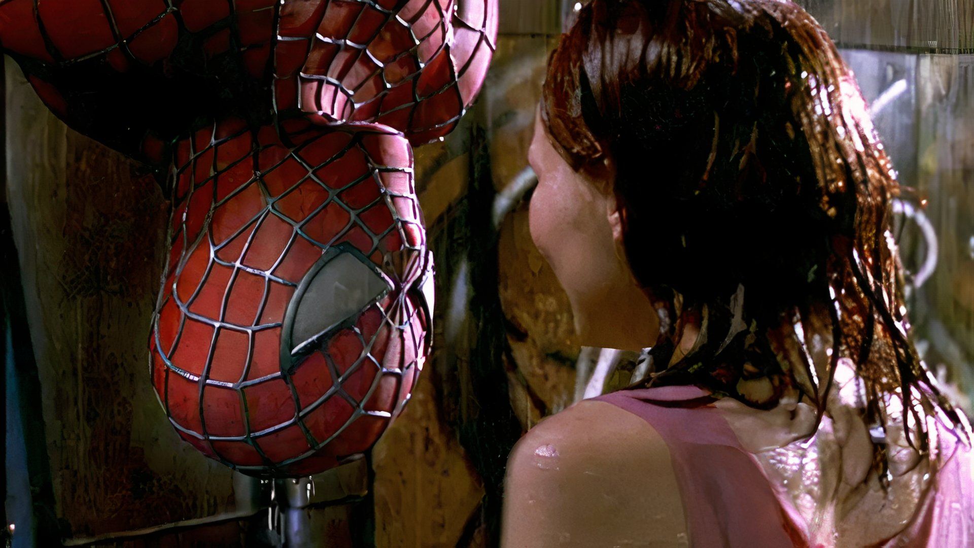 2002年的《蜘蛛侠》中,彼得·帕克和玛丽·简是邻居兼校友。彼得一直爱着玛丽·简,直到他被一只放射性蜘蛛咬伤,变成了我们熟知的蜘蛛侠。在一场雨中的巷子里,蜘蛛侠救下了玛丽·简,两人在雨中分享了他们的第一个吻,这个瞬间赢得了MTV电影奖的最佳吻奖。