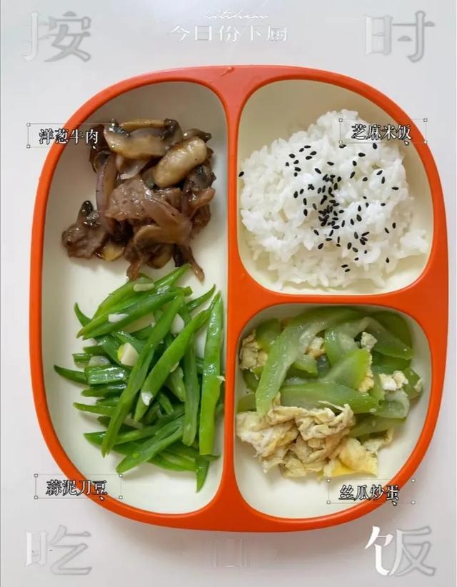 【洋葱牛肉,蒜泥刀豆,丝瓜炒鸡蛋】