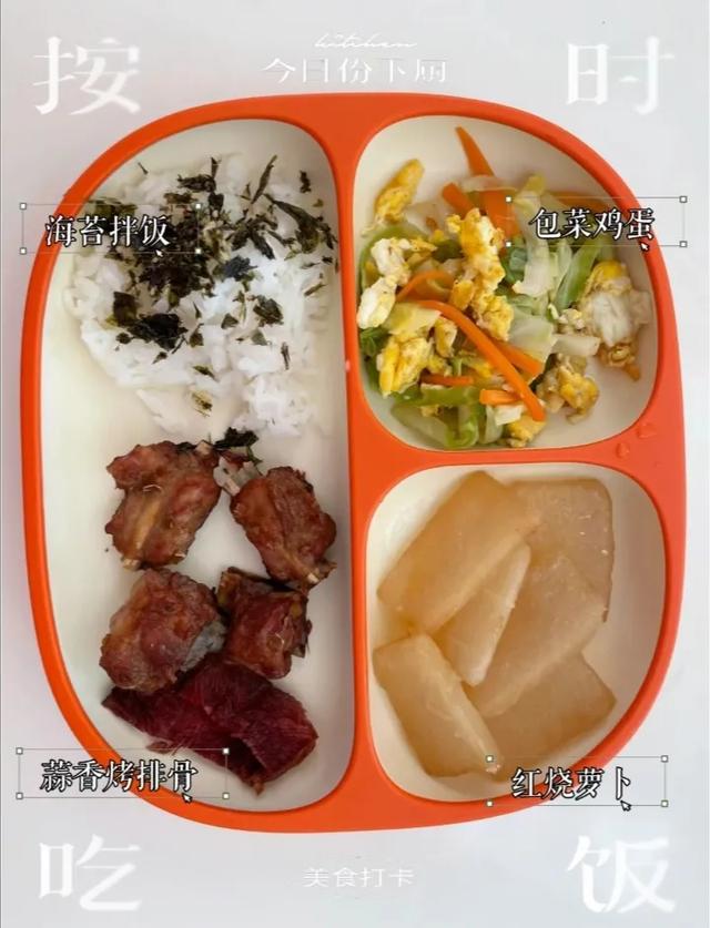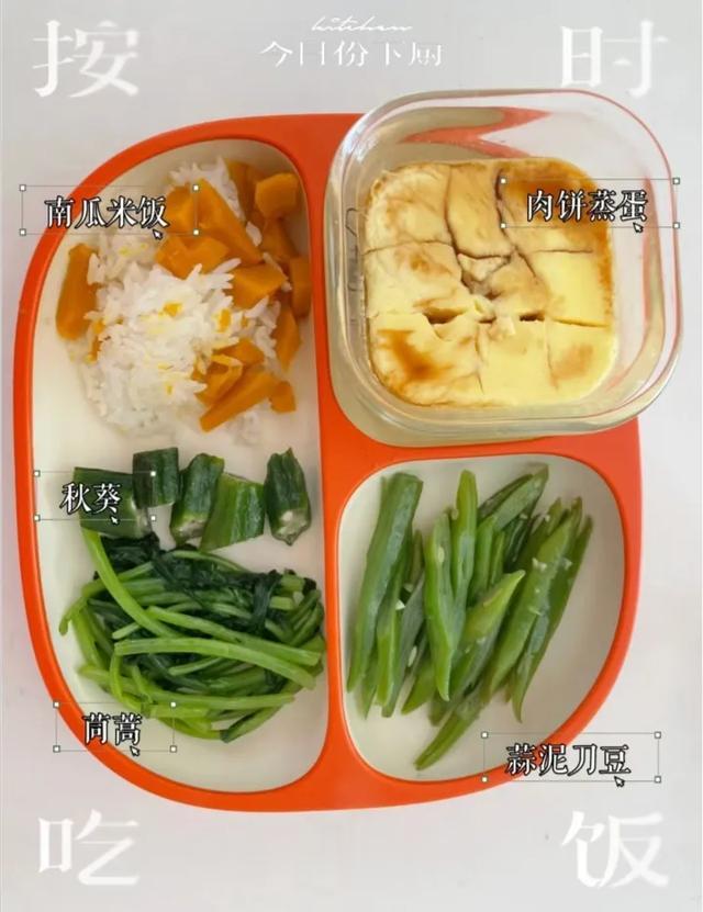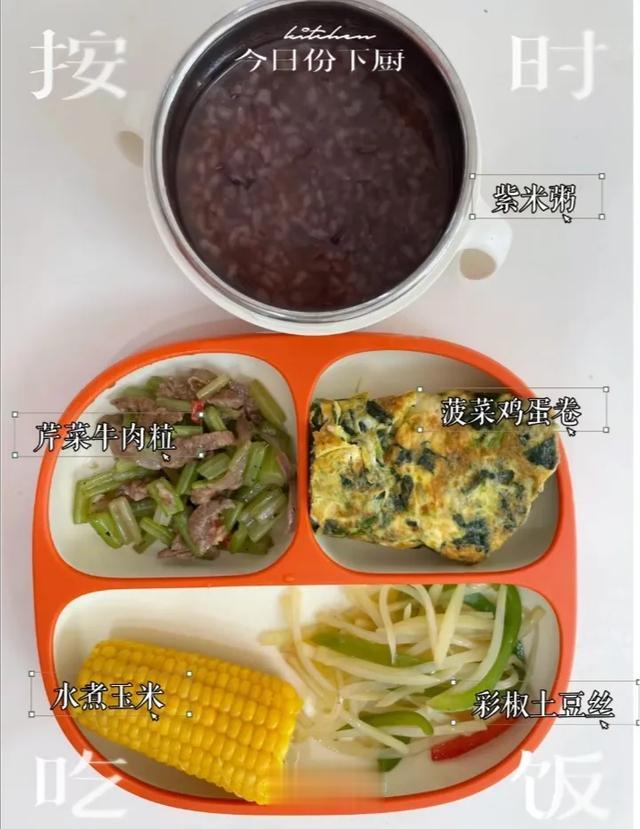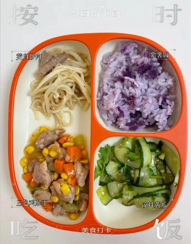 【茭白炒肉,紫薯饭,三色鸡腿丁】