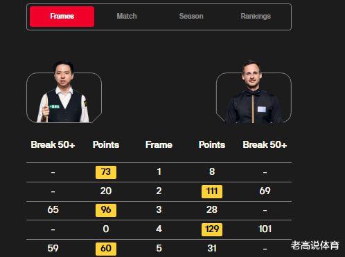 第七组首日比赛,肖国栋4战3胜1负。先是3-1战胜周跃龙,接着3-1击败桑坎姆,第三战1-3不敌沃顿,第四战3-2险胜奥康纳。第二个比赛日,肖国栋手感持续,先是直接3-0胜退赛的琼斯,接着33-1击败土豆哥,以5胜1负的成绩排名小组第二,进入随后的半决赛。