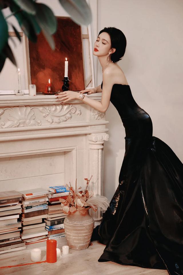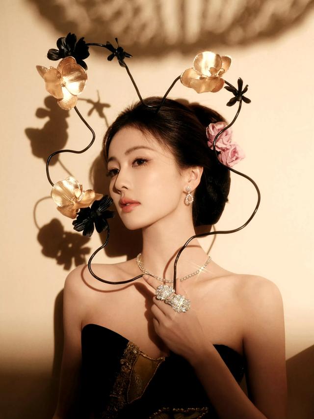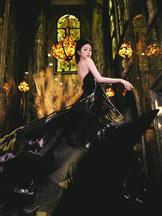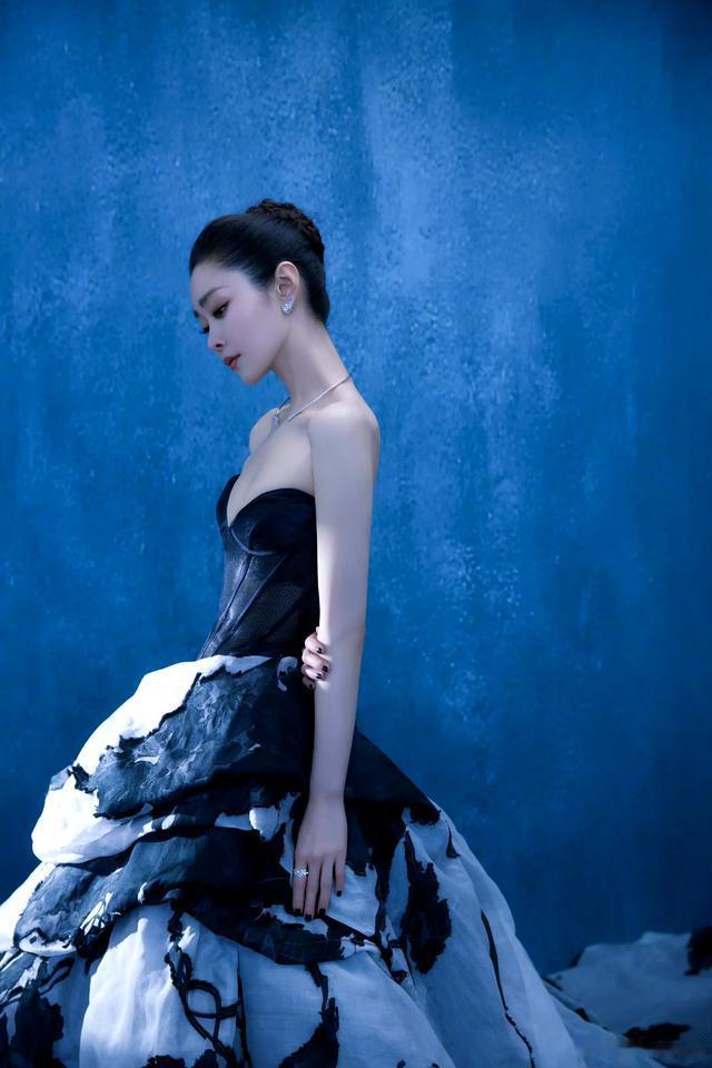 虞书欣虞书欣黑莲花女王造型:Tony Ward春夏定制抹胸礼服+DeBeer珠宝。