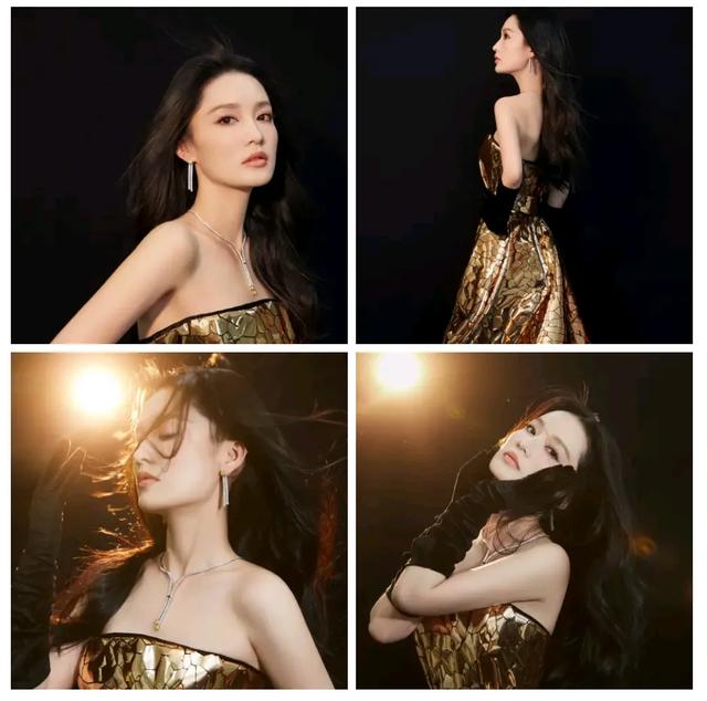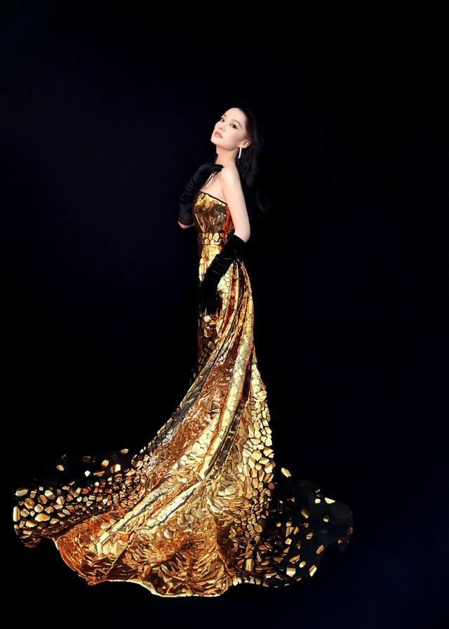 李沁李沁金色亮片裙装,蛇系女王上线,很适合蛇年的一套。