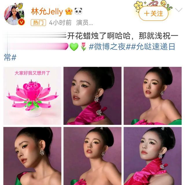 林允自己调侃撞衫了开花蜡烛,还说那就祝自己生日快乐吧。