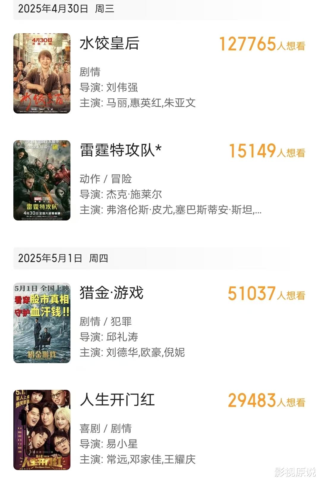 也就是说,今年五一档的票房冠军,必将在那四部高关注度影片中诞生。