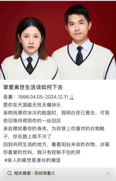 可广东一位33岁的男子却因思念亡妻过度,选择结束了自己的生命,引发激烈讨论。