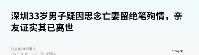 潇湘晨报2025.4.16——深圳33岁男子疑因思念亡妻留绝笔殉情,亲友证实其已离世