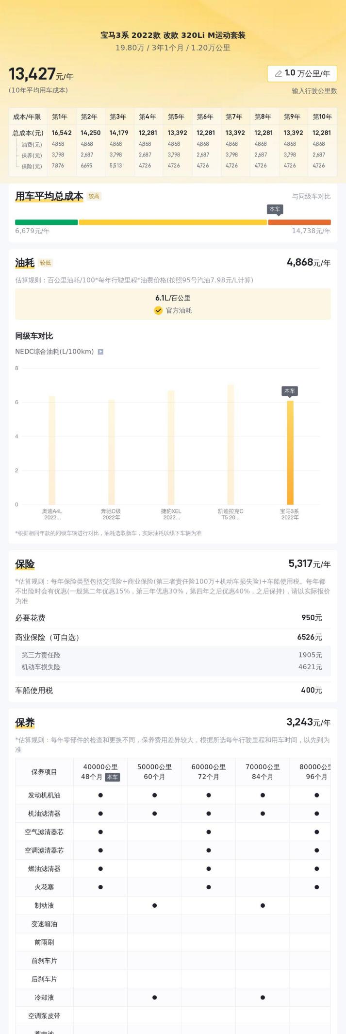 除了价格、车况和配置,我们还需要考虑用车成本。根据估算,这辆车的年均综合用车成本约为1.3万元。这包括了保险、保养、油费等各项支出。当然,实际用车成本会根据个人的驾驶习惯和行驶里程有所差异。但总体来说,这个数字还是比较合理的,不会给车主带来过大的经济负担。