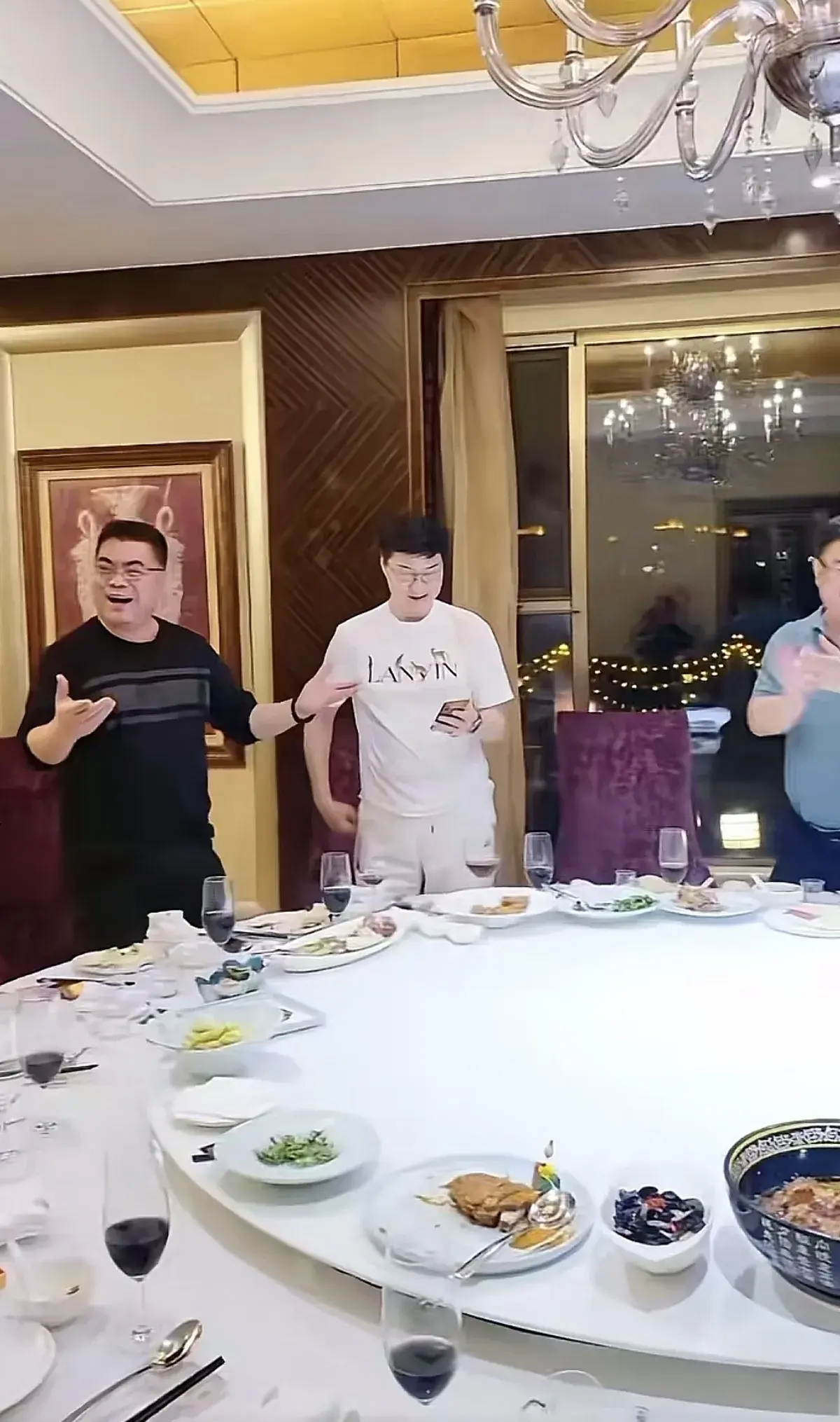 最后全桌站起来,跟着李丹阳一起唱歌,充满雅兴。